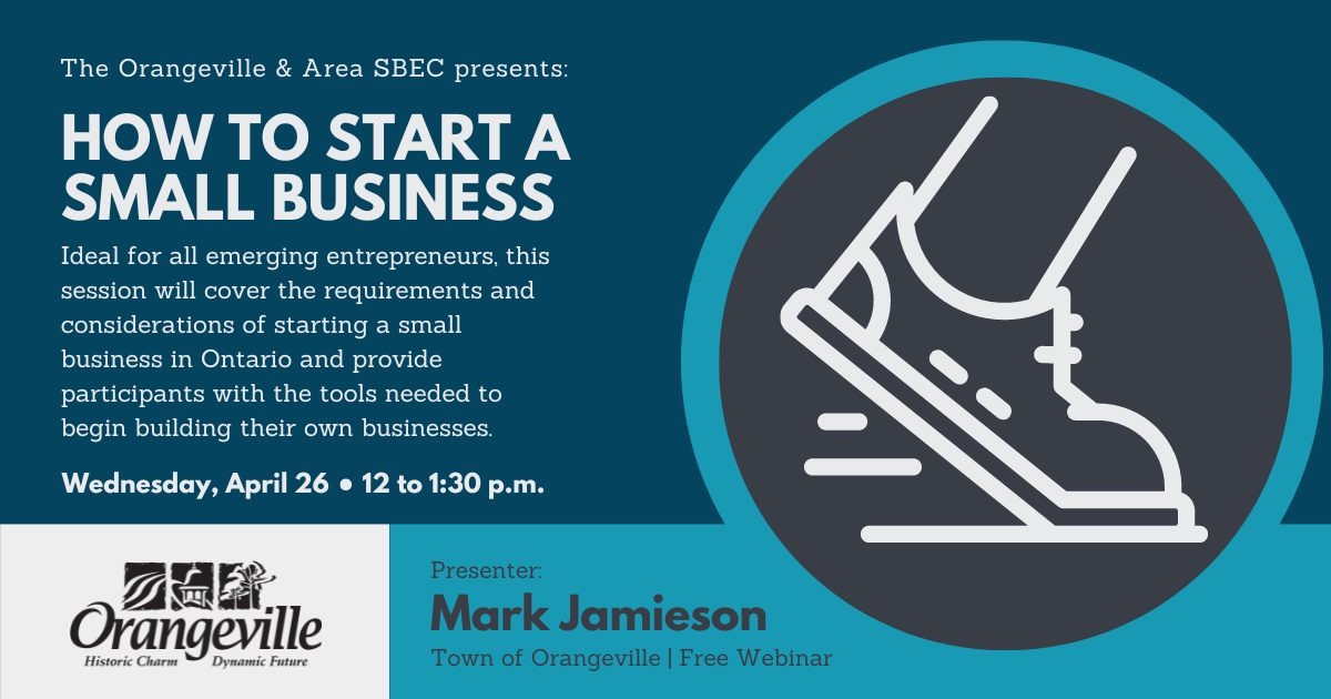 Ideal for all emerging entrepreneurs, this session will cover the requirements and considerations of starting a small business in Ontario. Mark Jamieson, Co-ordinator of the Orangeville & Area Small Business Enterprise Centre, will discuss the key elements of a business plan and why this essential document is so important when starting or growing a business. This workshop will also answer many start-up questions and provide participants with the tools needed to begin building their own businesses.