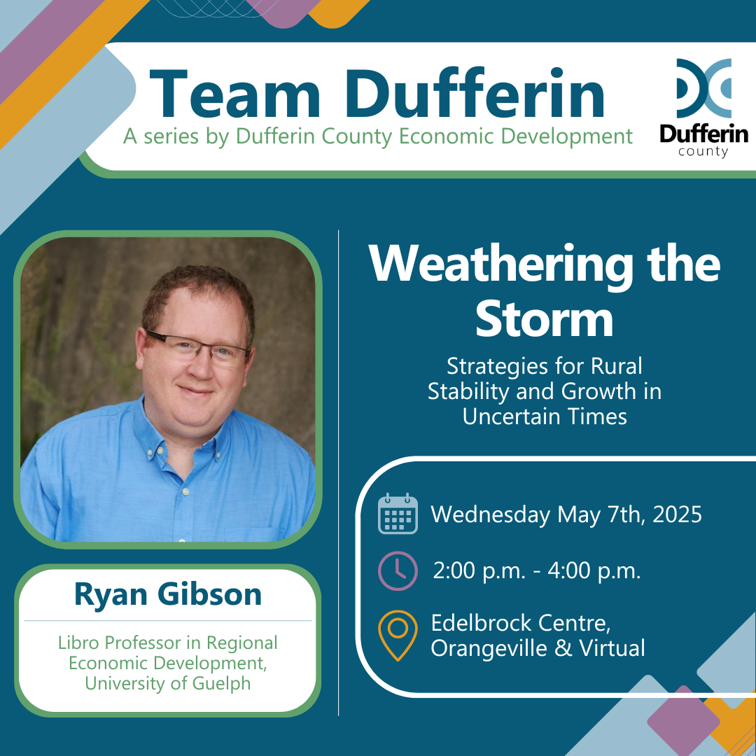 This session will take a closer look at Dufferin County’s rural economic landscape, with a spotlight on vulnerable sectors such as the agri-food industry and manufacturing, and the challenges and opportunities shaping their future.
