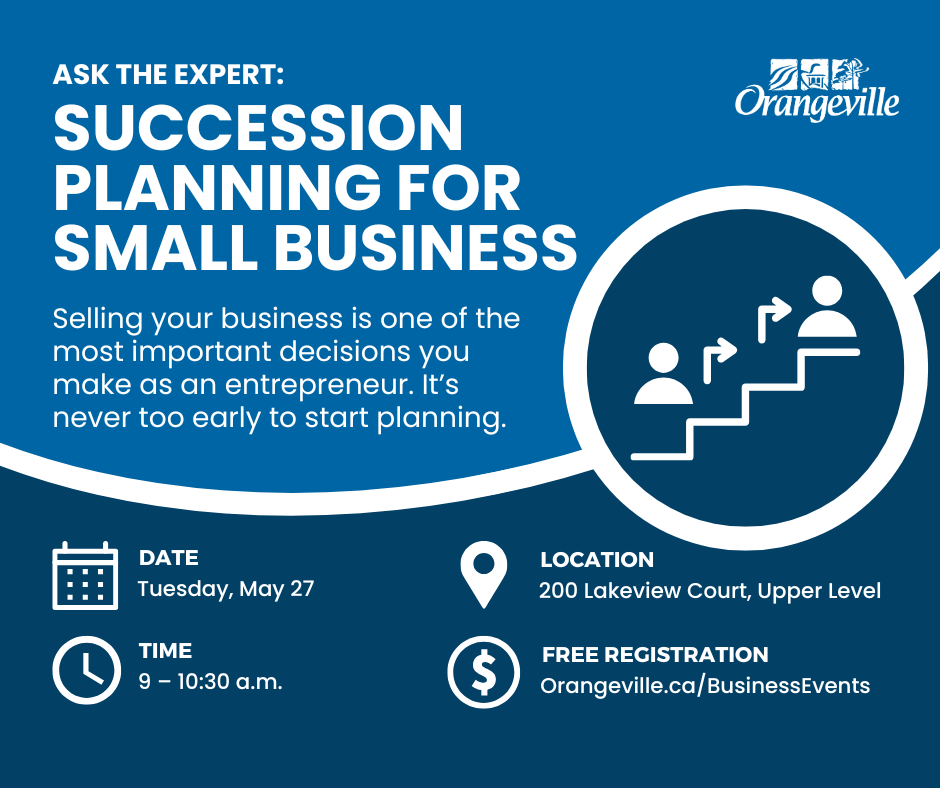 Selling your business is one of the most important decisions you make as an entrepreneur. Whether you want to retire or move on to other challenges, the sale could be your largest-ever financial transaction. Mark Jamieson, Co-ordinator of the Orangeville & Area Small Business Enterprise Centre, will discuss how taking the right steps early on can help you maximize the sale price, minimize tax liabilities and other expenses, and achieve your other goals for the transaction. In this workshop we will explore many exit options, whether they be internal or external. As a business owner, you know your business will eventually change hands. But will the transition occur on your terms.