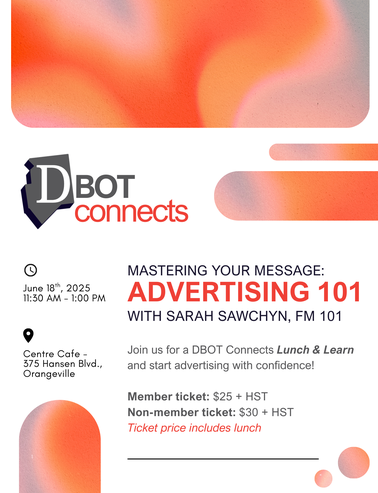 Special guest Sarah Sawchyn from FM 101 Orangeville will share expert insights on how to craft compelling messages and choose the right advertising strategies to make your brand stand out. Whether you're new to advertising or looking to sharpen your approach, this session will leave you feeling empowered and inspired.