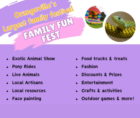 The second annual Family Fun Fest offers activies for all ages including an exotic reptile presentation, pony rides, inflatable obstacle course, a petting zoo, food trucks, live music, face painting and a vendor market. Tickets be purchased online in advance, with part of the proceeds supporting the Orangeville Food Bank.