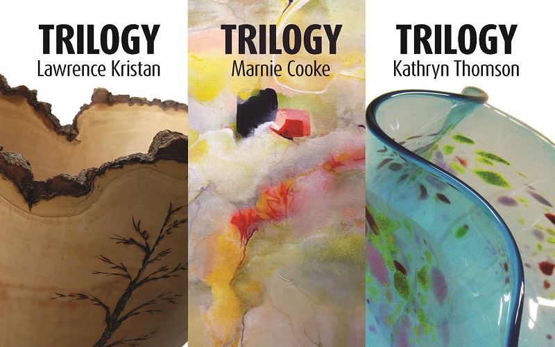 Kathryn Thomson, Glass artist at Glasscraft in Orangeville, and the Headwaters Arts Gallery proudly presents, “Trilogy”, a dynamite members art show featuring over 90 works by three extraordinary and extremely talented Headwaters Arts members, Marnie Cooke, painter; Kathryn Thomson, glass artist and Lawrence Kristan, wood turner.